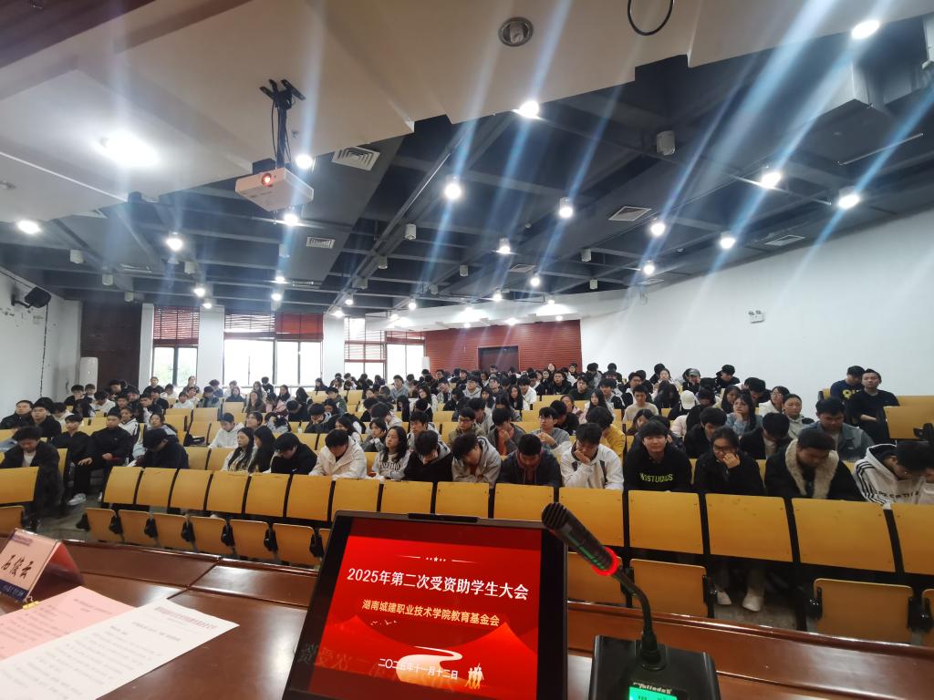2025年11月12日下午,学院教育基金会在建筑系三楼报告厅召开了2025年第二次受资助学生大会,参加会议的有学院党委委员、副院长刘可定,教育基金会理事长石俊云,招生就业处处长、教育基金会理事赵偶,教育基金会秘书长宁可夫,各系负责资助工作的老师,以及2023级、2024级、2025级受资助学生234人。